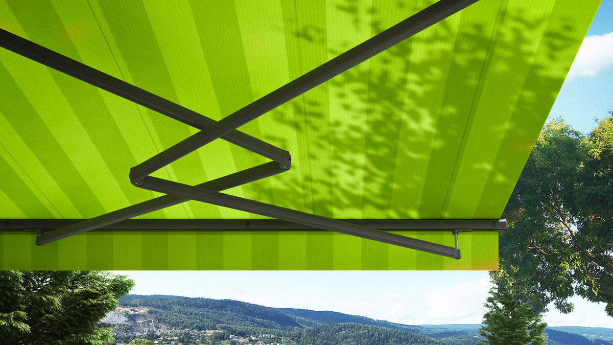 In schmalen Nischen, auf engen Terrassen oder Balkonen bringt markilux stretch die nötige Flexibilität: Mit zwei sich überkreuzenden Armen fahren auch Markisen mit geringer Breite weit heraus.