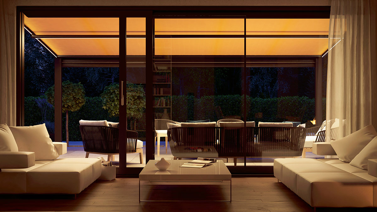 Genießen Sie den freien Blick aus einer geschützten Umgebung in Ihren Garten. Mit einem Wintergarten oder einer überdachten Terrasse erhalten Sie das Beste von drinnen und draußen. Um diese Freiheit uneingeschränkt zu genießen, schützen Sie sich mit einer Designmarkise für Wintergärten und Terrassendächer vor starker Sonneneinstrahlung!