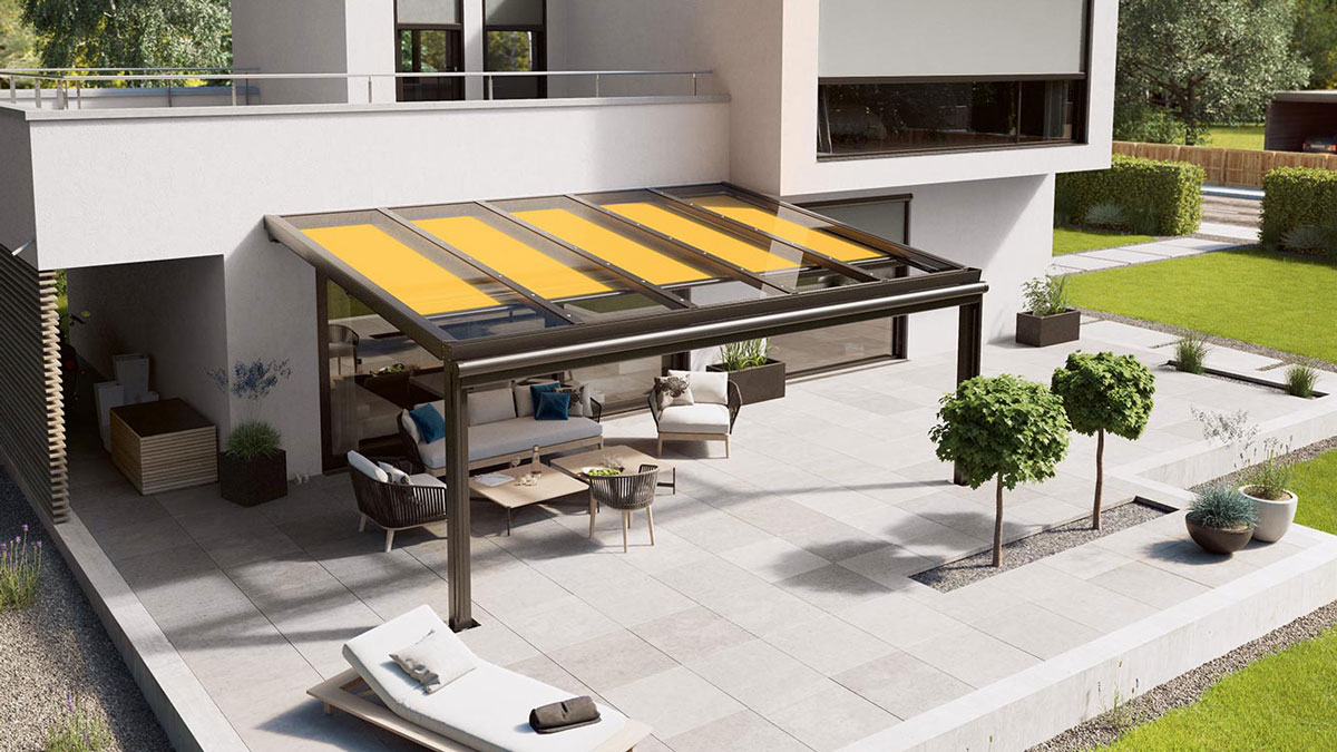 Die Markise wird entweder auf oder unter dem Glasdach montiert, für zuverlässigen Blendschutz und ein angenehmes Klima auf Ihrer Terrasse. Die hochwertigen textilen Beschattungen von markilux machen eine gute Figur und halten Wind und Wetter stand: so schaffen sie ein einladendes Ambiente. Lassen Sie sich nicht von Sommer oder Winter einschränken: Mit markilux ist jede Zeit genau richtig, um sich draußen wohlzufühlen!