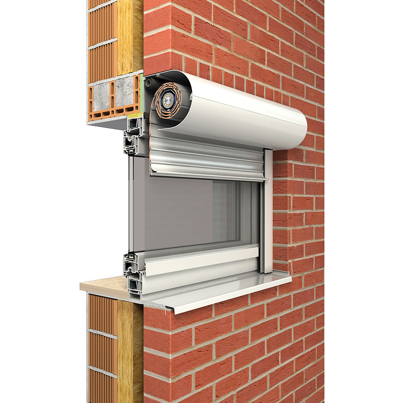 Das Rollladensystem passt sich in die Fassade ein und kann wahlweise mit eckiger oder fünfeckiger Frontblende verwendet werden.